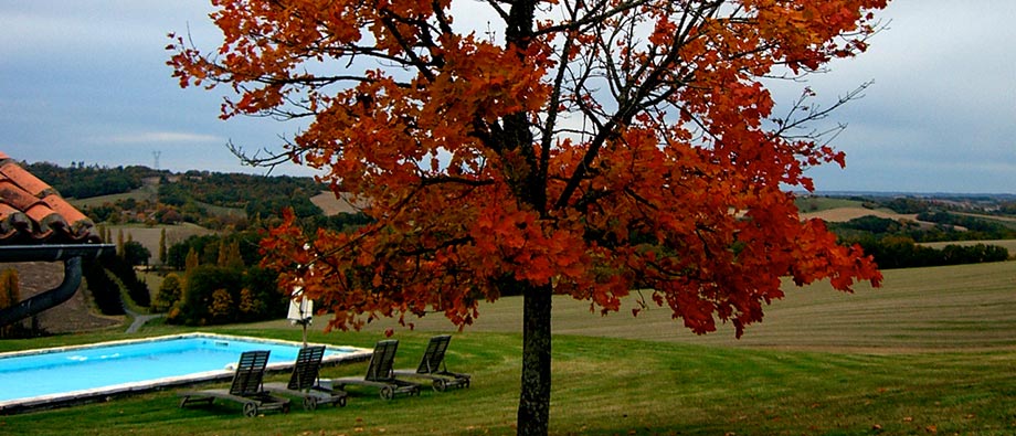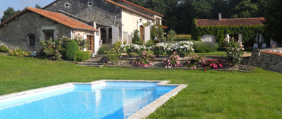 A majestic, century-old Tilleul tree is the focal point at the entry to the property. The gardens are abloom with flowers: Purple & white lavender, a rose garden, rock roses and climbing roses, boxwood hedges, geraniums, salvia, agapantha, iris, etc. Many mature trees surround the property: Walnut, plum, apple, wild cherry, chestnut, pine, liquid amber and oak. Some years our tenant farmer plants sunflowers in the fields and other years it is corn or wheat. But whatever the crop is, the fields always look beautiful and abundant! A sparkling pool sits on the hillside with a breathtaking panoramic view of the countryside.